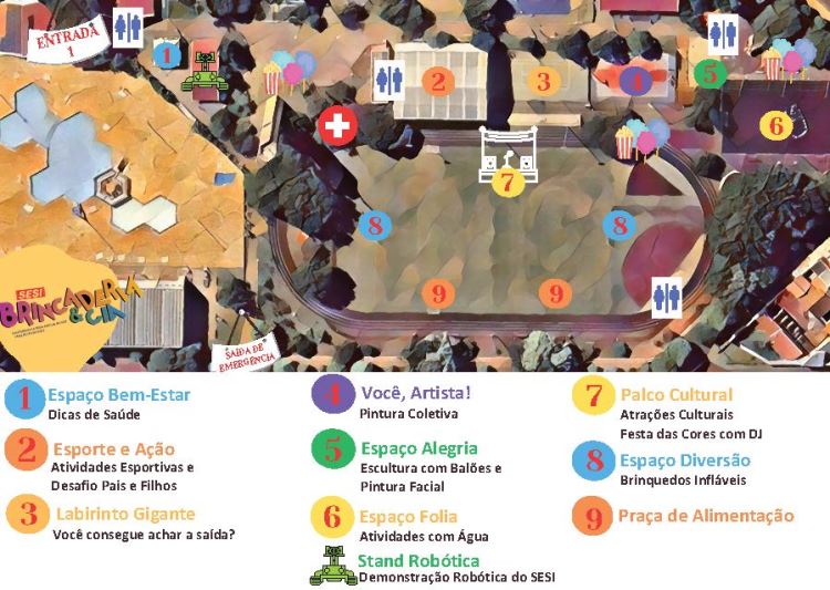 O Brincaderia&Cia vai acontecer no domingo (08/10), das 09h às 17h, no CAT Sesi Mogi Guaçu com atividades para toda a família. O evento será aberto à comunidade com entrada gratuita. Os interessados podem retirar os ingressos antecipados por meio do MEU SESI, evitando filas para o credenciamento no local. Cliente Sesi basta apresentar a Carteirinha do Sesi, sem necessidade do ingresso ou credenciamento. O evento conta com apoio da EPTV.