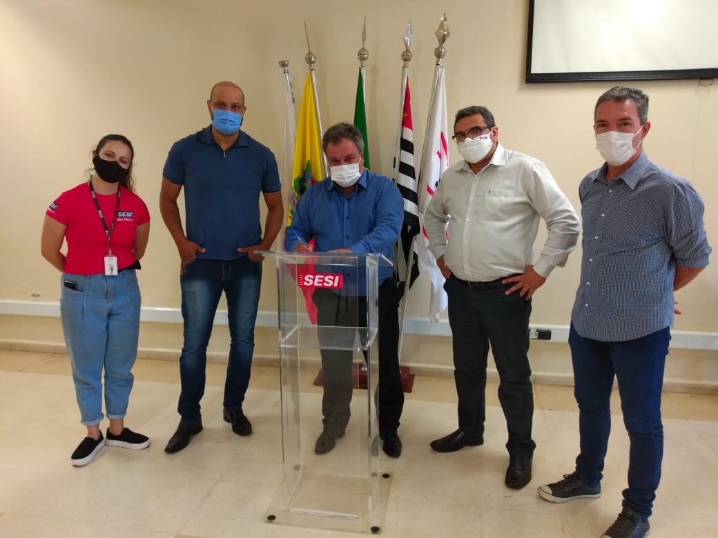 A Prefeitura de Tapiratiba firmou convênio com Sesi-SP para o Programa Atleta do Futuro. A assinatura aconteceu quinta-feira (23/09), no CAT Sesi Mogi Guaçu, com a participação do prefeito Ramon Jesus Vieira; do coordenador de Esportes, Tiago Martins de Freitas e dos representantes do Sesi, o diretor Laôr Fernandes de Oliveira; o coordenador de Relações com a Indústria e a Comunidade, Maurício Luiz Cola e a orientadora de Qualidade de Vida, Raissa de Campos Oliveira.