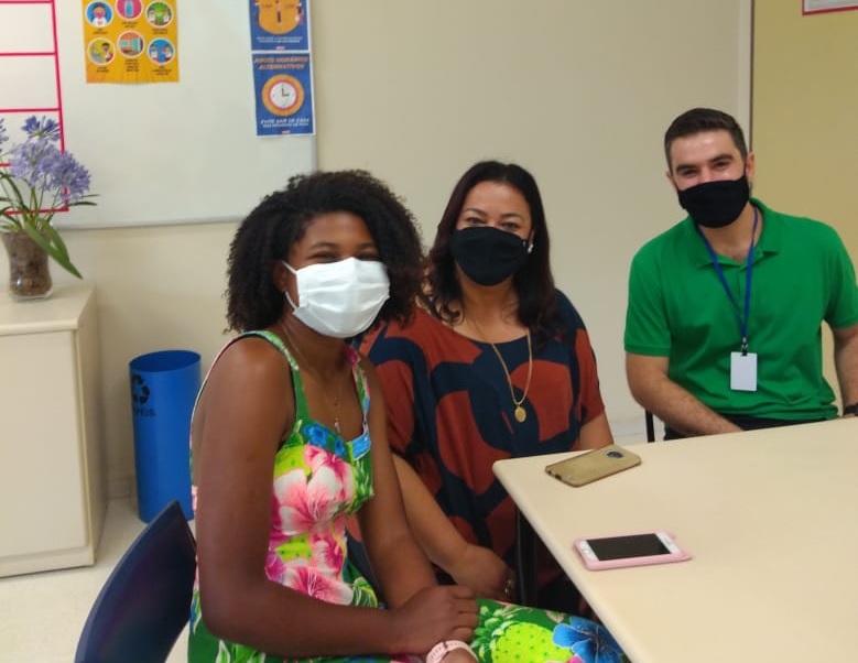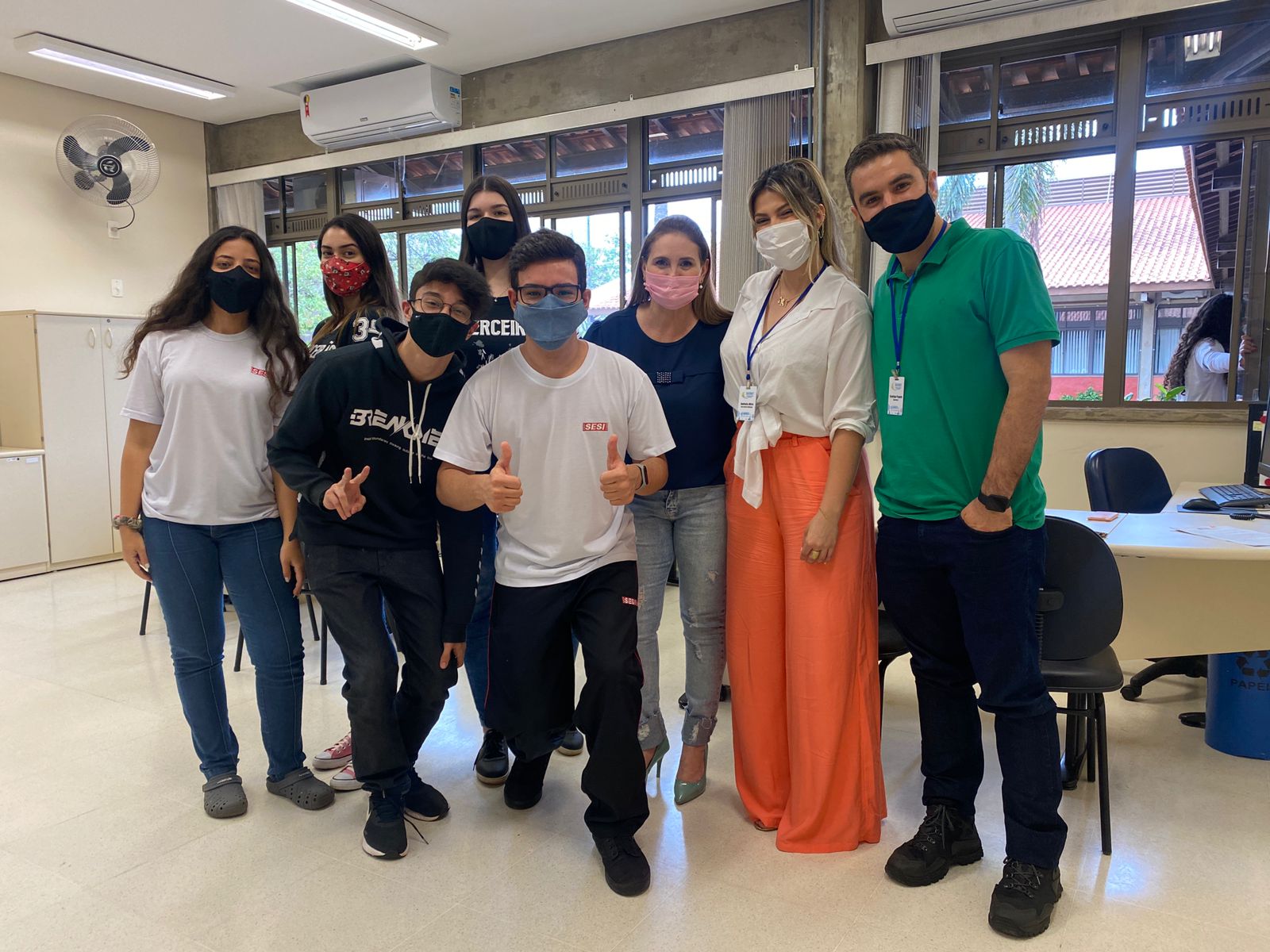 Estudantes com a professora Ionara, Nathália e Rodrigo